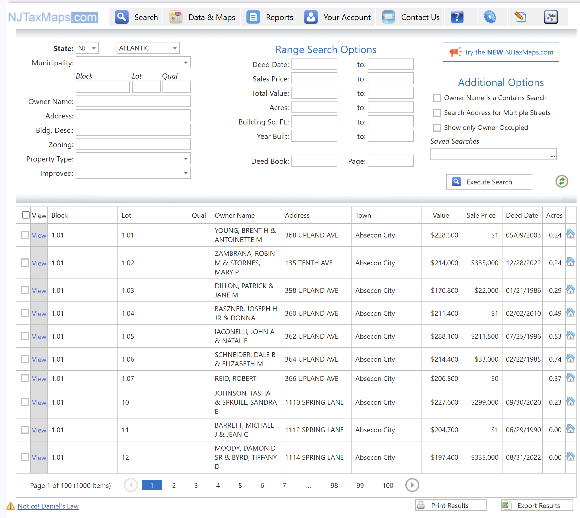 You can also query by sales price range or deed book / page.