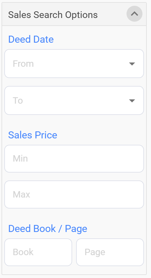 Expanding the Sales Search Options panel provides the ability to search for any recorded deeds within your desired date range.